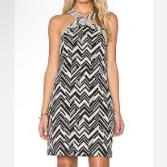Trina Turk dress Chevron Black Cream hint of gold size 2 NEW Akita