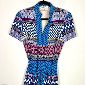 Trina Turk dress womens S Blue Multicolor TIe Waist Knee Length Casual Bright