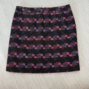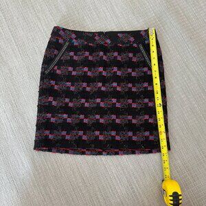 Trina Turk faux tweed, black & red patterned mini skirt, size 6