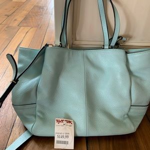 Like new top zip shoulder bag. Option of arm handles or shoulder. Silver hardware, all working. 2 large outside snap pockets, inside zip and slip pockets. A couple minor blemishes that would clean off. Pet and smoke free home.