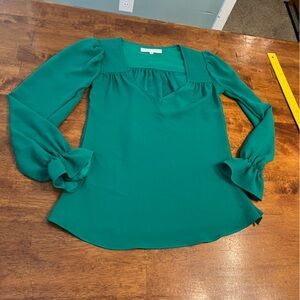 Trina Turk green blouse size XS Has been taken in on sides check measurements