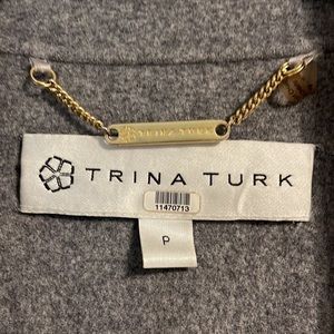 Trina Turk grey wool houndstooth double breasted oversized lightweight coat