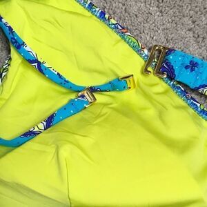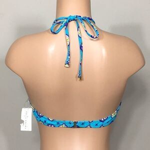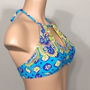 Beautiful floral paisley print high neck bikini top. The keyhole opening in the middle. Ties at the neck and has two adjustments lots to fasten in the back. Gold embellishment. Love the quality on Trina Turk suits. Bundle with one of the hundreds of bikini bottoms on my page and I’ll send you a discount and save on shipping.