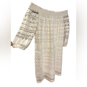 Trina Turk hoku embroidery lace off shoulder mini dress size M
