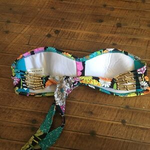 Trina Turk multicolored floral twist strapless size 6 bikini top