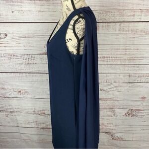 Trina Turk navy sleeveless v-neck dress with sheer train attached