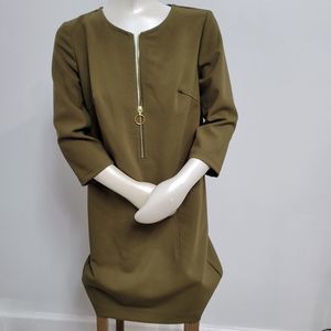 Trina Turk olive green half zip 3/4 sleeve dress size 2.