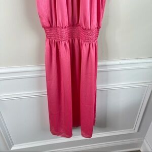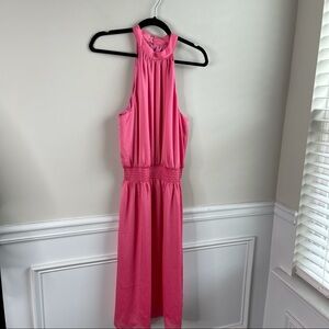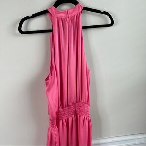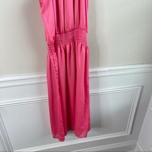 Trina Turk pink moonlit halter satin midi dress size large wedding guest