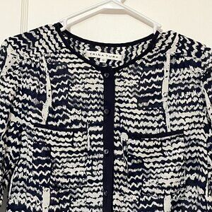 Trina Turk silk printed button up shirt blouse size small career quiet luxury