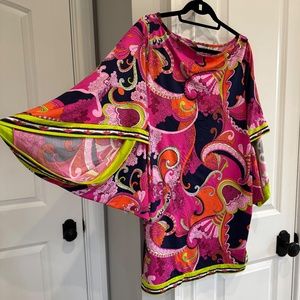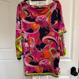 beautiful colors on the multi purpose tunic. can be worn with leggings, as a dress or a coverup. no stains. smoke free home.