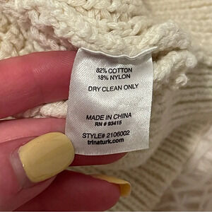 Trina Turk turtle neck knit cotton top vest cream shiny pullover size S