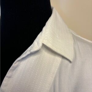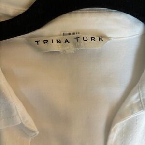Crisp and classic with detailing on the v neck line. Trina Turk’s best design. White tunic. Size tag is missing - size medium or slim 8