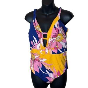 Trina Turk women’s breeze plunge one piece bathing suit new with FLAW 14