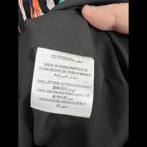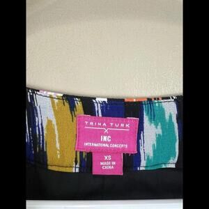 This is a Trina Turk x INC mini dress in size XS for women. It features a colorful sequin collar with bell sleeves and a shift style. The dress is designed with a vibrant multicolor theme and a short dress length, perfect for a stylish and chic look.