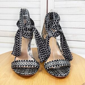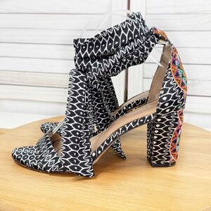 Trina Turk x INC Embroidered Kanata Anke Wrap Block Heels Black Multi 7.5