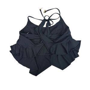 Trina Turk Black Flutter Ruffle Halter Tankini Swimsuit Top Size 6