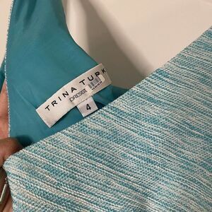 Trina Turk Blue Jeweled collar sleeveless tweed knit dress size US 4
