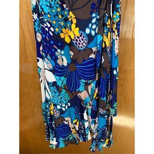 Trina Turk Found In Translation Kaciee Wrap Midi Dress Blue Multi Size 6-8 M