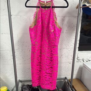 Trina Turk HOT Pink Halter Dress - Lace - NWOT - Size 8 Never Worn - Zip Back