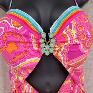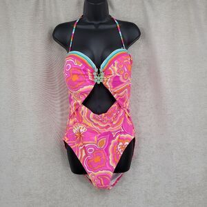 Trina Turk Morning Sunrise Bandeau One Piece Monokini Swimsuit Size 14 NEW