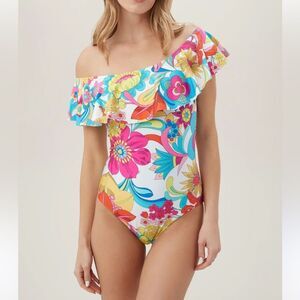 Trina Turk NWT Fontaine Off The Shoulder Ruffle Floral One Piece Swimsuit