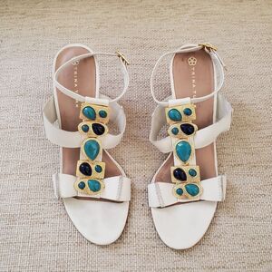 Trina Turk Silver Lake White Leather Jeweled Sandals Sz 7.5