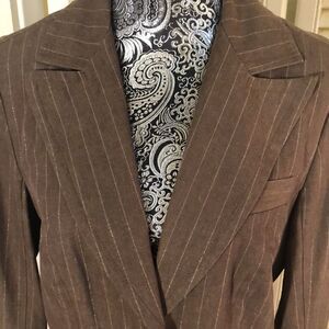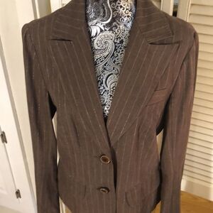 Trina Turk Silver Striped Brown Jacket. Dress up your office with this neutral.