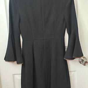 Trina Turk . Chic black dress with elegant gold detailing. Features stylish flared sleeves. Dress in lined and zips in the back. This dress is gorgeous for any special occasion. Excellent Excellent Condition. Smoke free home.