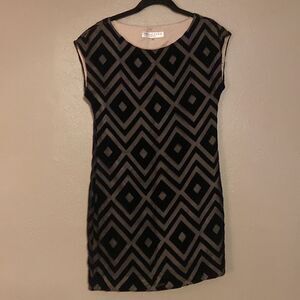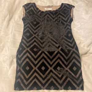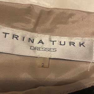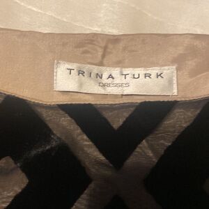 Trina Turk Evening After Five Cocktail Dress Velvet Sheer Ladies Size 2. The black details on the dress are of black velvet over a a tan sheer material. Pair with a nude or black pump for a night out.