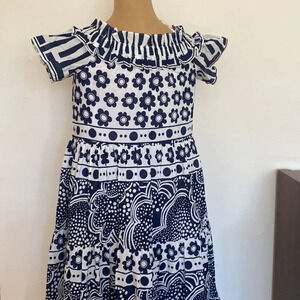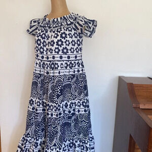 Trina Turk Los Angeles sz XS resort dress 43” middle of neckline-hem navy white