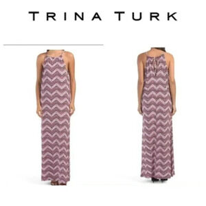 Trina Turk Milian 2 Chevron Maxi Dress Multi Color Halter Tie Back size medium