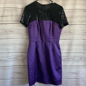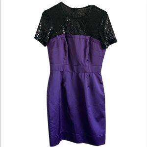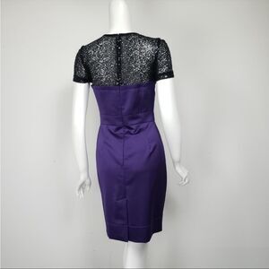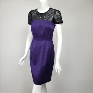 Trina Turk Purple Satin Vintage Lace Lined Cocktail Party Holiday Dress