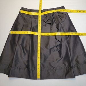 Trina Turk Silk Crepe Black A-Line Pleated Midi Skirt Bow Ties Waist Pockets