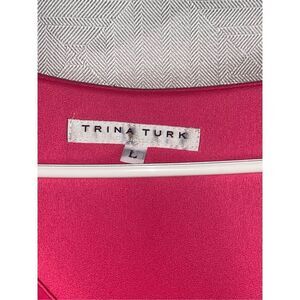 Trina Turk Women’s Blouse Size L Fuchsia Pink Ruffle Overlay V-Neck Top Pom Trim