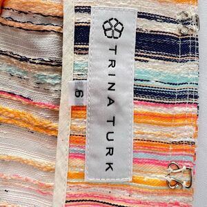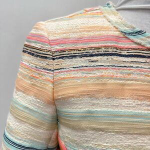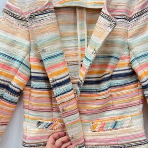 Trina Turk Women’s Size 6 Small Nani Stripe Woven Jacket Blazer Fringe Hem Neon