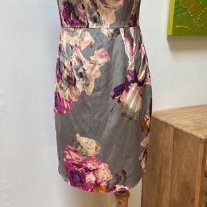 This stunning classic cut is a must have for any wedding or event. With the bold floral pattern on a soft grey background, it is not only flattering but eye catching! Fiber Content: 68% rayon, 29% cotton, 3% spandex