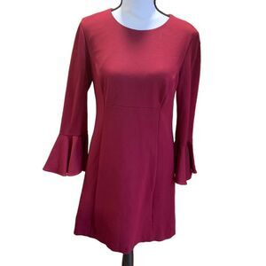 Trina Turk Maroon Mini-Dress, Bell Sleeves, New with Flaw