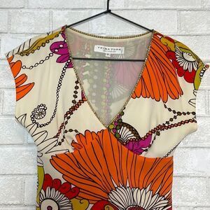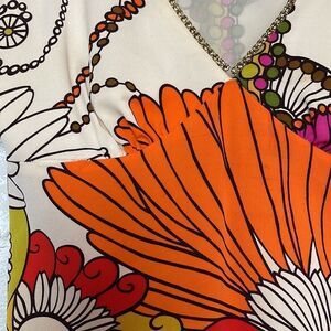 Fair condition. There is a small stain on the left bust (see photo). There are some pulls beneath the bust (see photos) as well as a hole in the underbust seam (see photo). Lastly, the is a small tear on the back left side hem and a large pull.