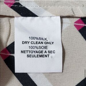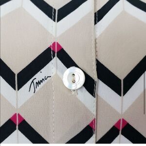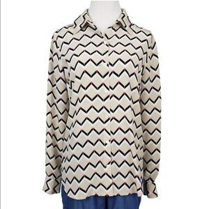 Trina Turk Size Large Silk Logo Herringbone Button Down Top