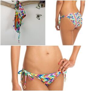 Multi colored reversible trina turk swim bottom only. Has charms at end of each tie