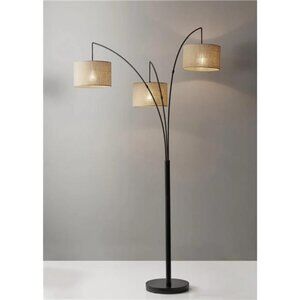 Customizable Positioning – Featuring three beige burlap shades suspended from arms with an antique bronze finish this arc floor lamp directs light where needed. Ideal lighting for content creators, workspaces, and living room.