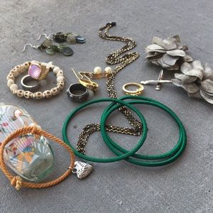 Three emerald green bangles that look great and effortless.