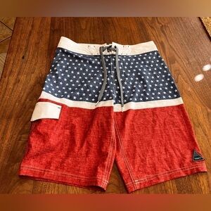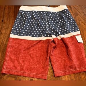 Trinity Board Shorts American Flag Waist 28 Stars Stripes Swimsuit Trunks