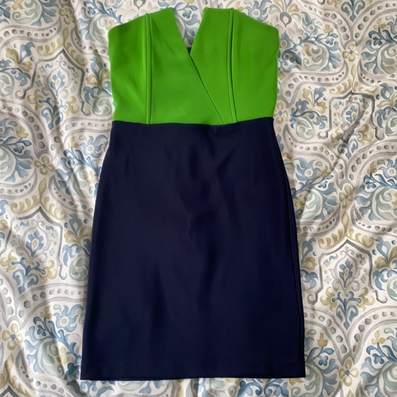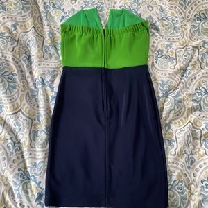 Strapless, blue and green dress. Never Worn. Lined top.
