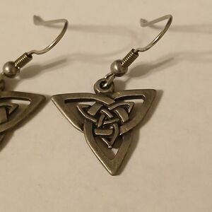 Trinity Celtic Knotwork Triangle Silver Tone Drop Earrings