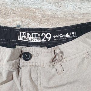 The Trinity Mens Large Shorts Hybrid 29" Waist are perfect for any casual occasion. This fashionable and comfortable piece is made of a blend of polyester and spandex for durability and softness. The tan solid color pairs with any outfit and the 29" waist size fits perfectly. Whether you are going to the beach, working out, surfing, or just hanging out, these shorts are the perfect choice.