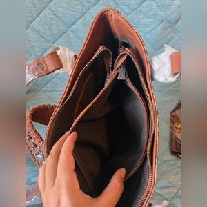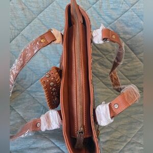 Trinity Ranch line by Montana West, this partial genuine leather concealed carry tote has: