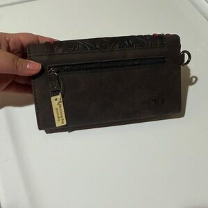 Trinity Ranch Floral Tooled Collection Wallet - Coffee