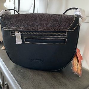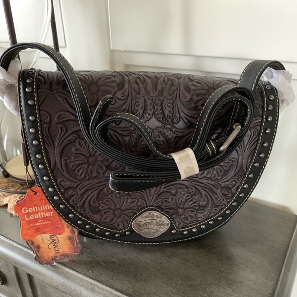Trinity Ranch line by Montana West, this partial genuine leather handbag has: