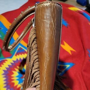 VERY VERY WORN!!! its still very cute! see photos for Condition. I know they make leather paint that can be used to repair but I am no longer into western and have no desire to fix the bag. price reflects condition.
